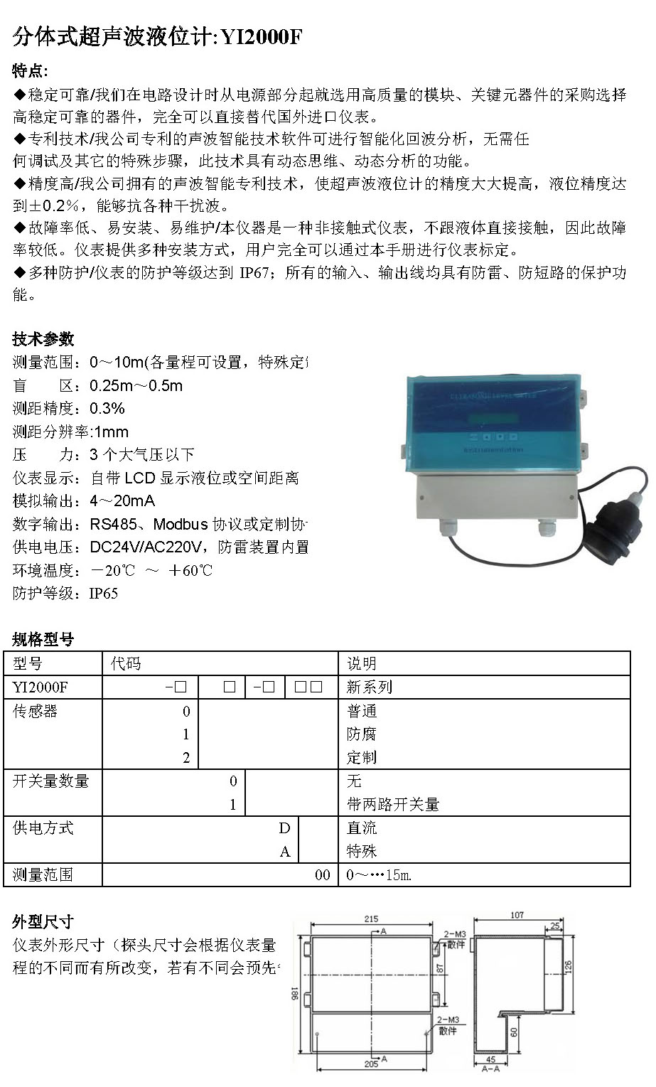 分体式超声波液位计YI2000F
