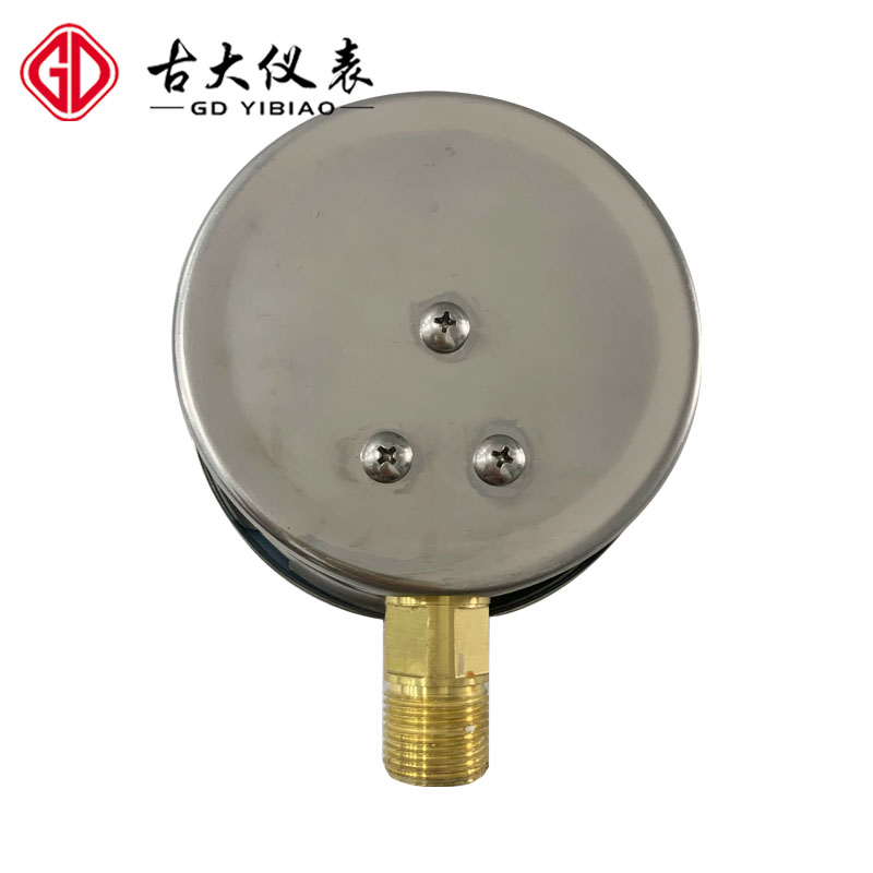 仪表外壳(表盖与表壳)系采用特种奥氏体不锈耐酸钢制成,两者以滚边式或卡口式(限Y-100A 系列)结构予以密封连接;接头与表壳之间以特有的结构形式并配以优质密封圈进行可靠密封。