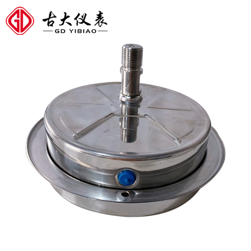 仪表由导压系统(包括接头、弹簧、限流螺钉等)、齿轮传动机构、示数装置(指针与度盘)和外壳(包括表壳、表盖、表玻璃等)所组成。外壳为气密型结构,能有效地保护内部机件免受环境影响和污秽侵入。对于在外壳内充液(*般为硅油或甘油)的仪表,能够抗工作环境振动较剧和减少介质压力的脉动影响。